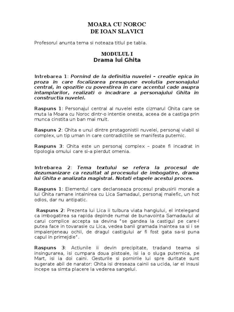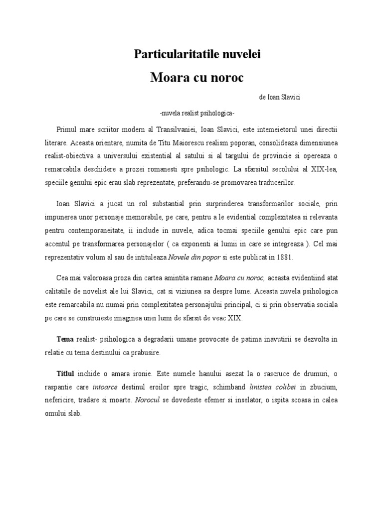 Moara Cu Noroc De Ioan Slavici Titlul Bacalaureat Lb Romana Facebook