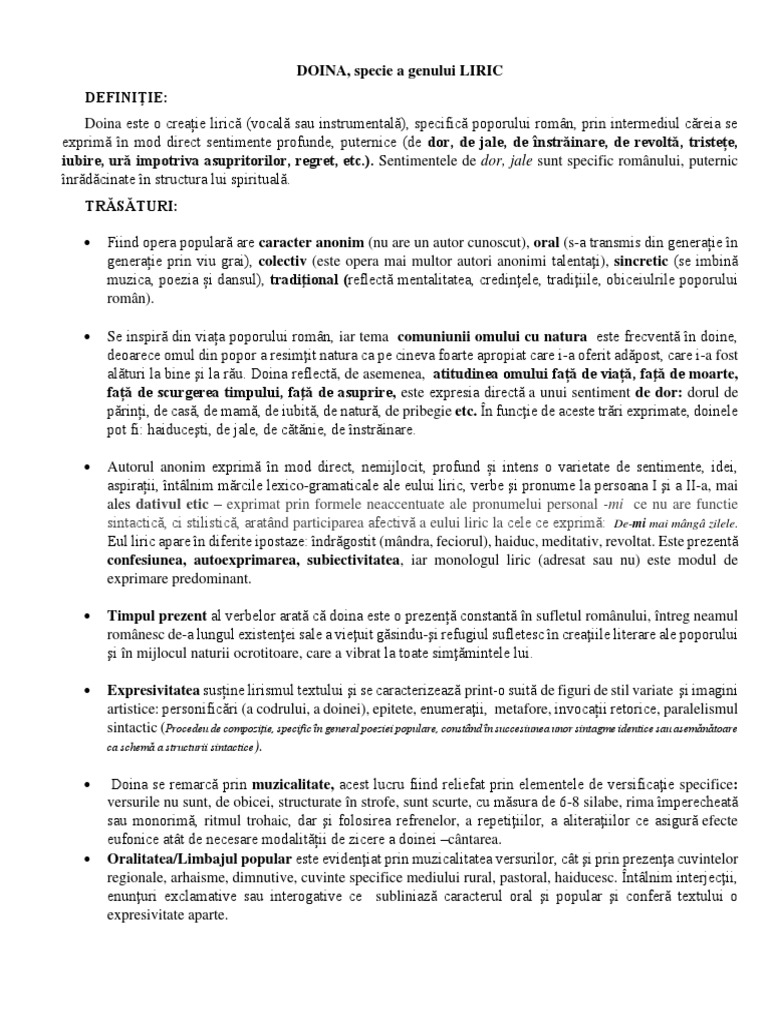 Doina Apartenenta Unei Opere La Specia Doina Populara Docx