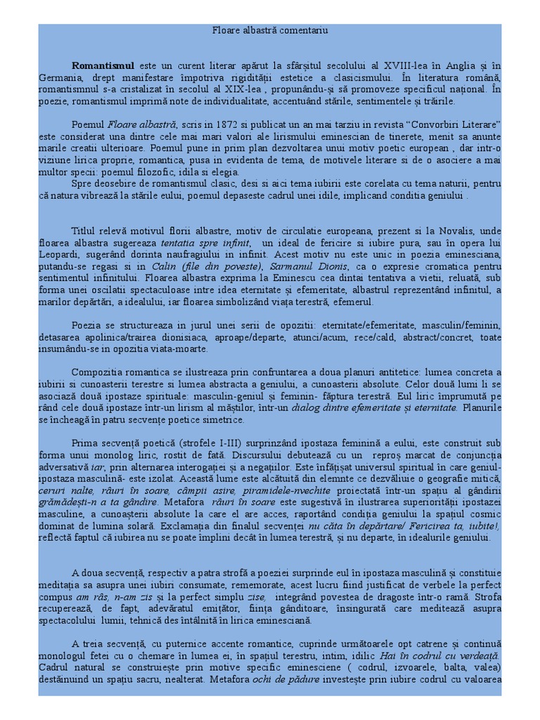 Floare Albastra Comentariu