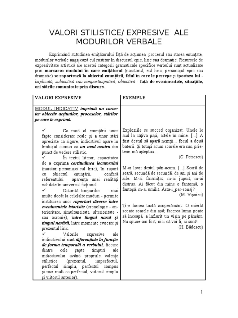 Doc Valori Stilistice Ale Modurilor Verbale Silvia Postolache Academia Edu