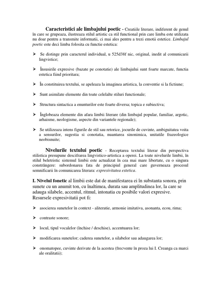 Caracteristici Ale Limbajului Poetic