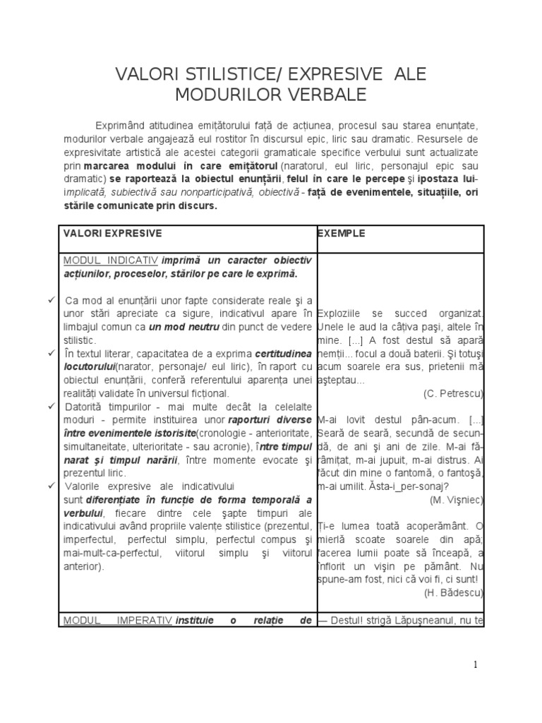 Valori Stilistice Expresive Ale Modurilor Verbale Ori Stările Comunicate Prin Discurs