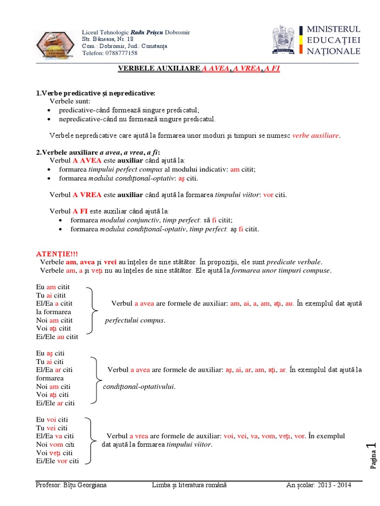 Verbul 2 Modurile Si Timpurile Mijloace De Imbogatire A Vocabularului School Lessons Education Kids Education