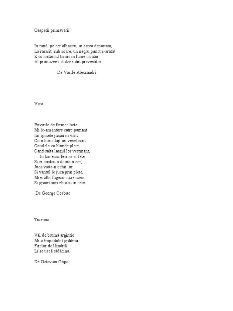 Oaspetii Primaverii De Vasile Alecsandri Anideșcoală Ro