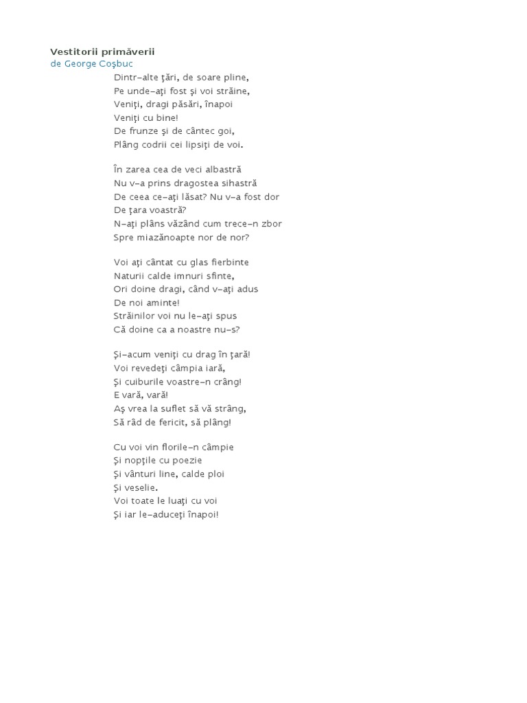 Cosbuc George Vestitorii Primaverii Pdf