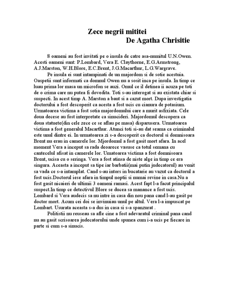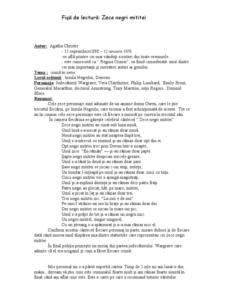 Fisă De Lectură Zece Negri Mititei Rezumate Cărți Citeste Cărți Online Pdf Caracterizări Referate Si Comentarii Cărți